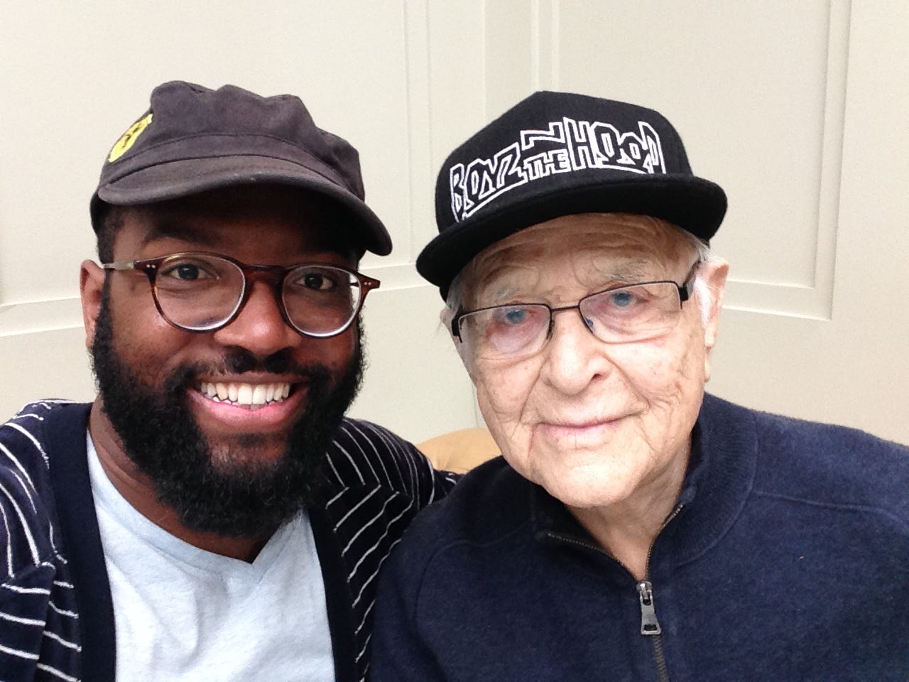 Me with Norman Lear in March 2015. We switched hats. I wore glasses then.